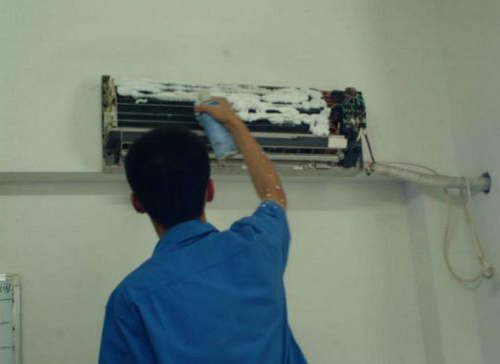| 长白空调维修师傅给长白用户上门维修清洗空调。 |